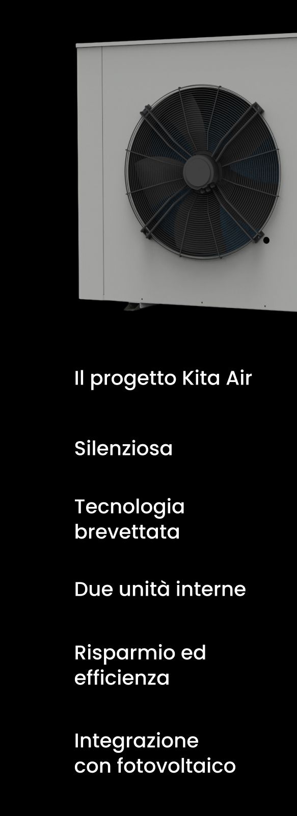 KITA è una pompa di calore aria-acqua ad alto rendimento energetico di nuova generazione. KITA produce riscaldamento, condizionamento ed acqua calda sanitaria, senza necessità di integrazione tramite caldaie o resistenze elettriche.